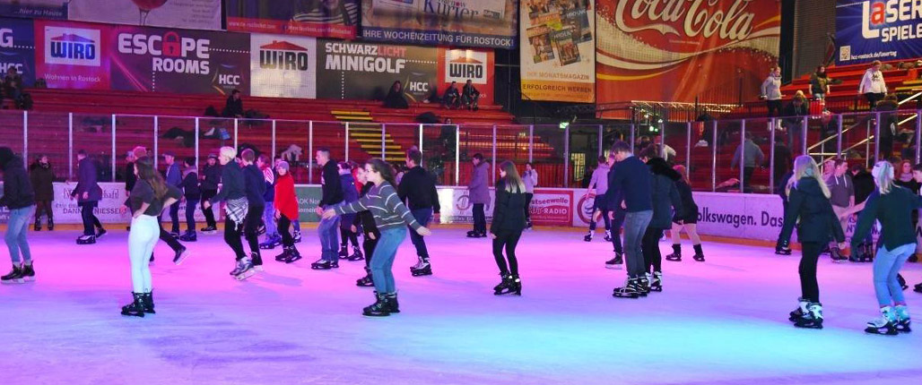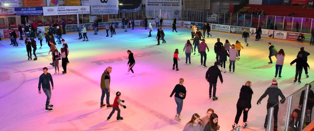 Die größte Eishalle in Mecklenburg-Vorpommern lädt jedes Jahr von September bis April alle Interessierten zum Schlittschuhlaufen ein. Jeden Mittwoch, Samstag und Sonntag treffen sich hier Jung & Alt bei angenehmen Temperaturen und cooler DJ-Musik, um auf der 1.800 qm großen Eislauffläche ihre Runden zu drehen. In den Schulferien von M-V hat die Eishalle täglich geöffnet. Unsere Öffnungszeiten könnt Ihr hier einsehen.